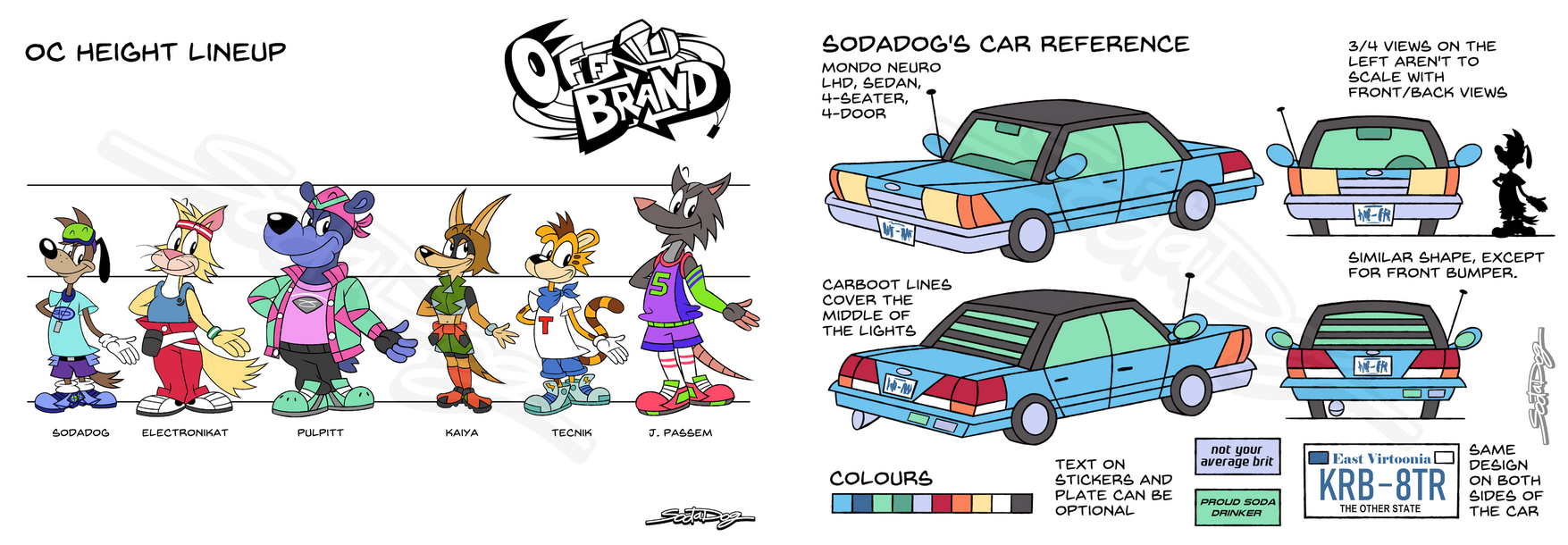 My name is Cain Winter, or better known as my handle SodaDog.I am a UK-based English cartoonist, specialising in character design, comics, background design and even graphic design! Much of my influences stem from cartoony and cool stuff, which is a mantra I have forged over the past couple of years.I use a Gaomon PD Tablet, and my primary line of tools consist of Paint Tool SAI 2, Clip Paint Studio, Paint.NET and Inkscape. I also draw stuff on paper from time to time as well, mostly comics.I've been working on an original project called Off Brand, a comic series about brand mascots living daily lives and trying new things, with usually comical results.While I hope to get ahead in creating my series sometime, I wouldn't mind doing freelance work!------------------------------------------